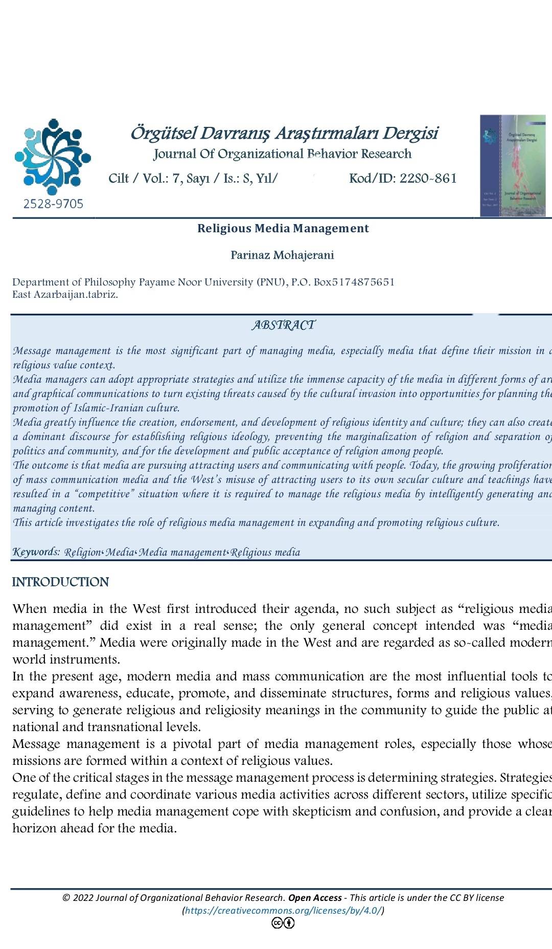نام مجله JOURNAL OF ORGANIZATIONAL BEHAVIOR RESEARCH ISSN: 2528-9705 http://odad.org/en https://www.scopus.com/sourceid/21101272843