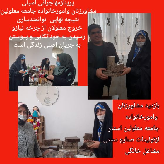 طرح درامتداد مهر۴ بازدید پرینازمهاجرانی مشاورزنان وامورخانواده جامعه معلولین استان ازتولیدات مشاغل خانگی جامعه معلولین طرح درامتداد مهر ۴با همکاری مرکز نیکوکاری شهید